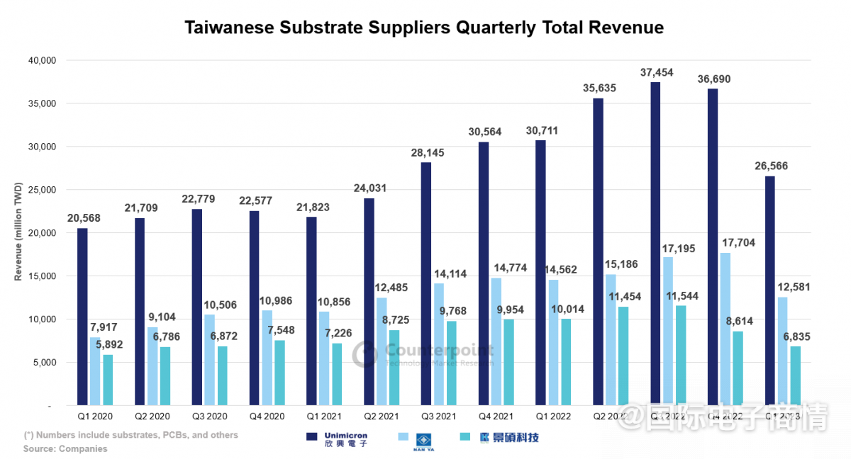 三家中國臺灣芯片載板制造商欣興、景碩、南亞均在第一、第二季度遭遇超預期的衰退,不過欣興電子表示二季度末的情況有所改善,這是由于英特爾Sapphire Rapids、AMD Epyc Genoa服務器處理器促進了高端載板需求。