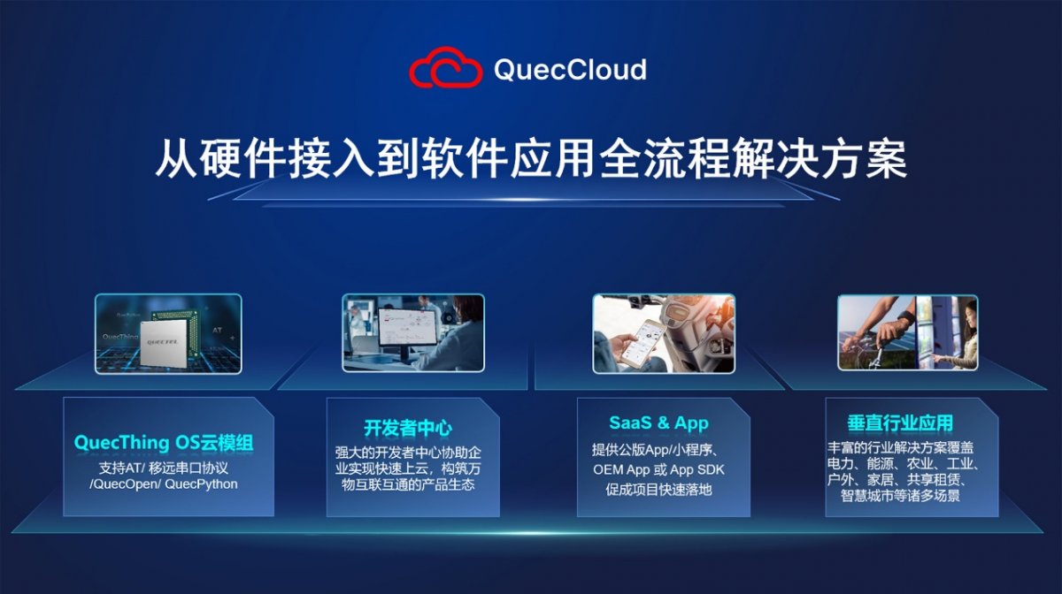 4月12日,在“萬物智聯·共數未來”移遠通信物聯網生態大會上,移遠通信宣布正式推出其物聯網云服務——QuecCloud。QuecCloud具備智能硬件開發、物聯網開放平臺、行業解決方案三大能力,可為開發者和企業用戶提供從硬件接入到軟件應用的全流程解決方案,助力行業客戶快速實現智能化升級和商業化落地。