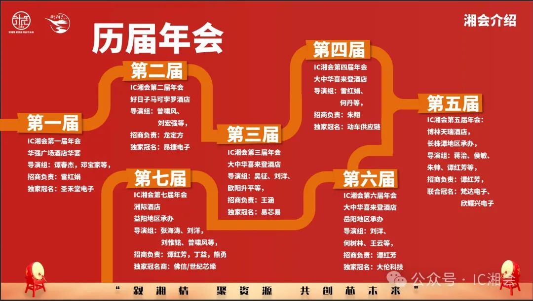 2025年1月5日13:30分,深圳市坂田星河吉酒店一樓宴會廳,IC湘會第八屆年會將如期舉行。以“敘湘情 聚資源 共創芯未來”為永恒主題,攜手全體組委會成員,期待與您共同見證了這一榮耀時刻。