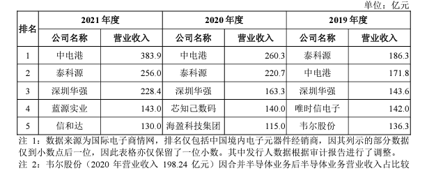 根據(jù)招股書披露,在2019年度、2020年度、2021年度、2022年1-6月的報(bào)告期內(nèi),中電港實(shí)現(xiàn)營(yíng)業(yè)收入分別為1,718,314.95萬(wàn)元、2,602,597.05萬(wàn)元、3,839,100.32萬(wàn)元和2,509,541.26萬(wàn)元,最近三年該公司營(yíng)業(yè)收入連續(xù)破百億且年均復(fù)合增長(zhǎng)率達(dá)到49.47%;實(shí)現(xiàn)凈利潤(rùn)分別為8,590.48萬(wàn)元、31,931.75萬(wàn)元、和33,675.42萬(wàn)元和18,536.46萬(wàn)元,公司銷售規(guī)模和盈利能力保持持續(xù)增長(zhǎng)。
